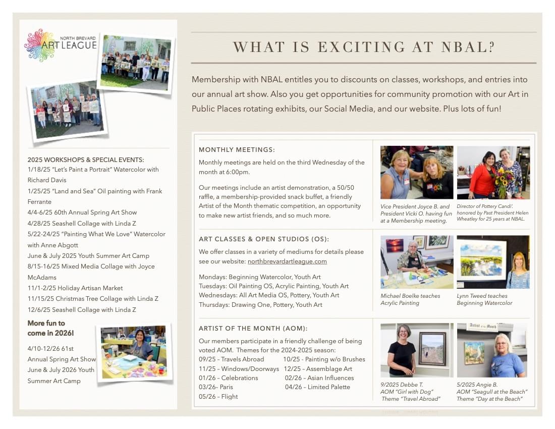 Whether you have been making art since childhood, or just started last week, we welcome your membership! Joining NBAL offers discounts on classes, workshops, and entry fees to our annual art show; along with opportunities to volunteer and socialize with other local artists.